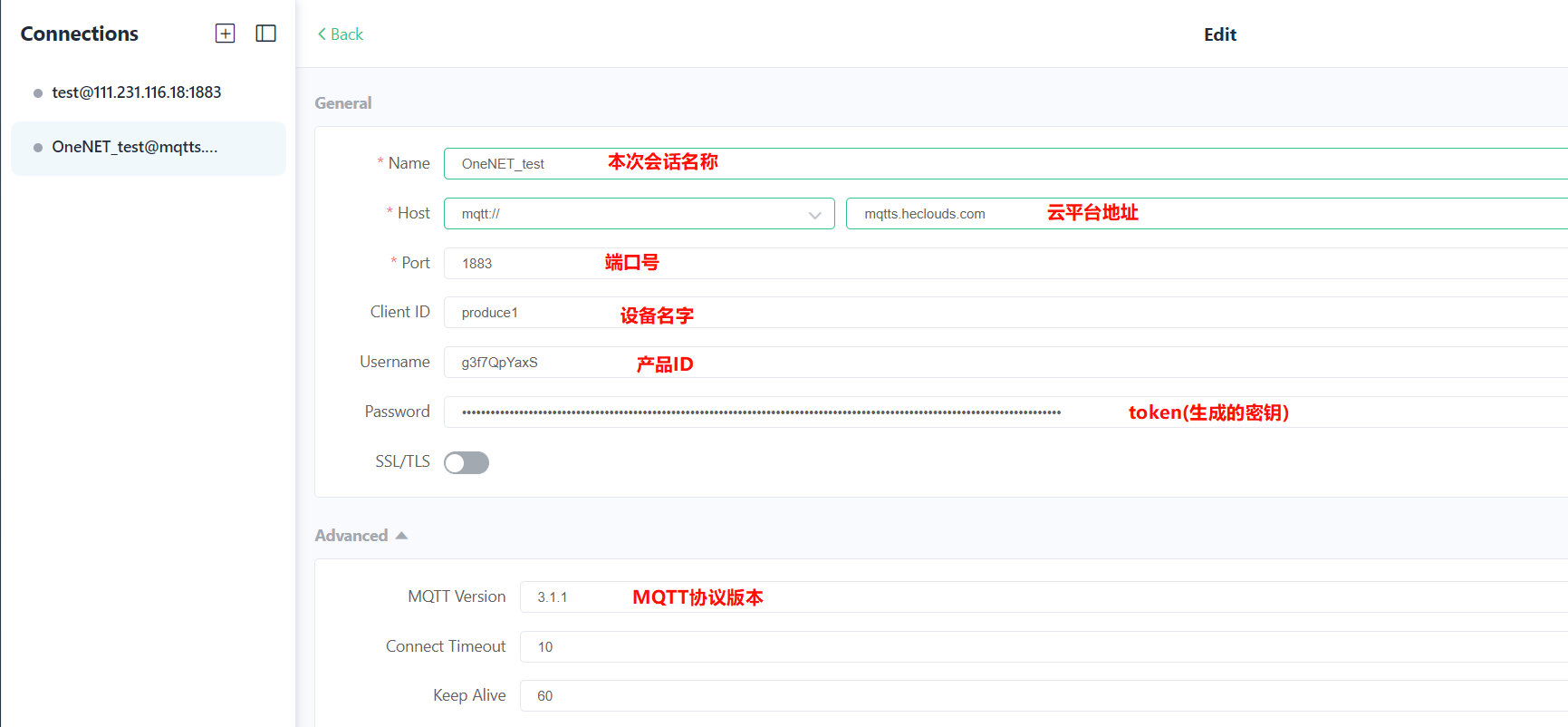 云平台地址:mqtts.heclouds.com